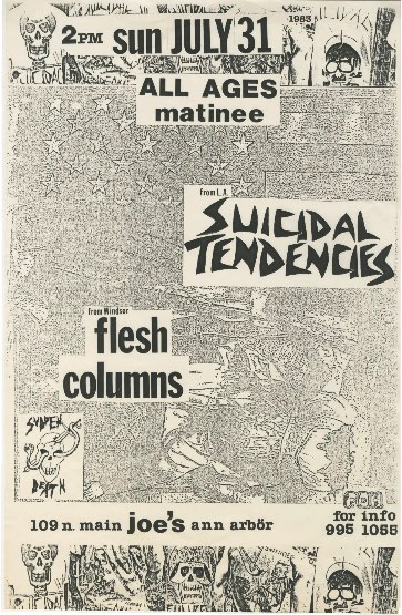 - 31/07/1983; Concert at Joe's, Ann Arbor, MI, USA. with Flesh Column & Sudden Death.