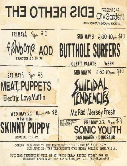 - 28/09/1984; Concert at The City Gardens, Trenton, NJ, USA. opening for Adrenalin O.D. & 76% Uncertain.