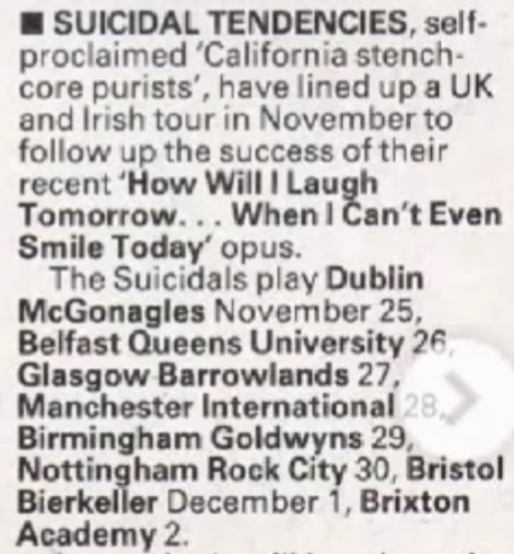 - 05/07/1983; 'Suicidal Tendencies' album released. (also listed as 23/06 on some flyers).