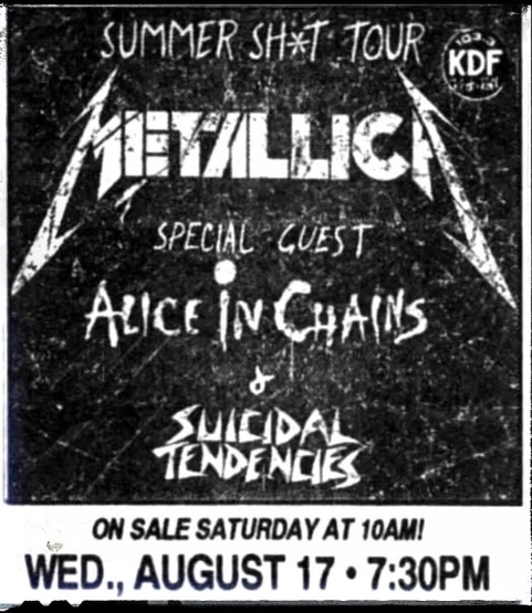- 26/07/1994; Concert at Velodrome Field, Carson, CA, USA. opening for Metallica, with Alice In Chains.