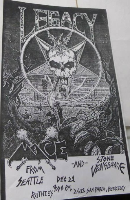 - 04/03/1987; Concert at The Stone, San Francisco, CA, USA. with Mordred & Sacrilege. (last show as 'The Legacy').