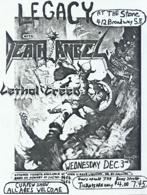 - 03/12/1986; Concert at The Stone, San Francisco, CA, USA. with Death Angel & Lethal Creed.
