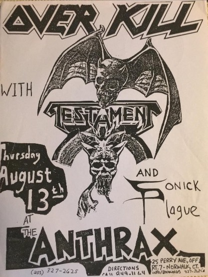 - 13/08/1987; Concert at The Anthrax Club, Norwalk, CT, USA. opening for Overkill, with Sonic Plague.