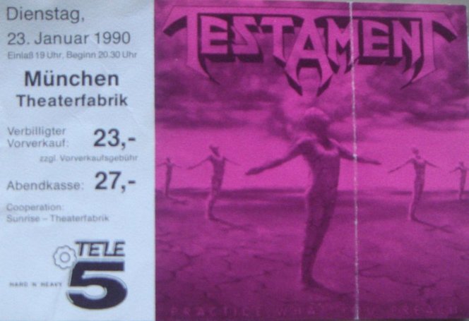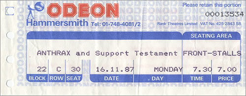 - 20/10/1987; Concert at Alabamahalle, Munich, Germany. opening for Anthrax.