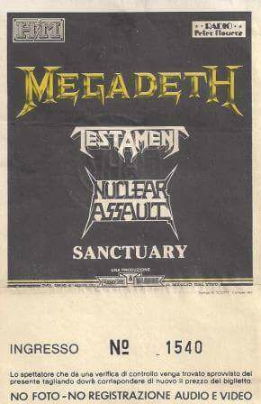- 21/10/1987; Concert at Sports Palace, Padova, Italy. opening for Anthrax.