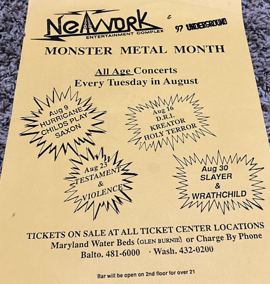 - 12/08/1987; Concert at The Bayou, Washington, DC, USA. opening for Overkill.