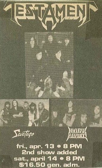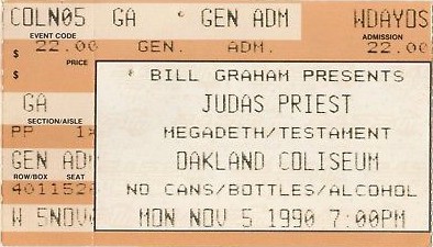 - 10/07/1987; Concert at The Omni, San Francisco, CA, USA. with Heathen & Forbidden Evil.