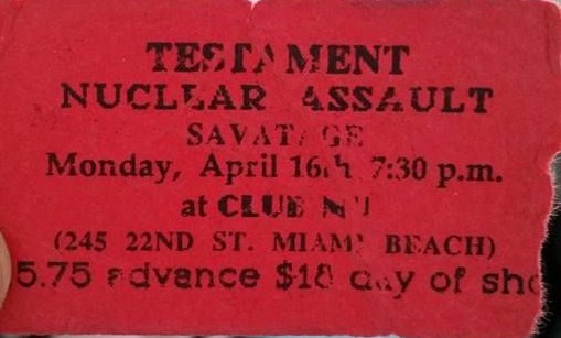 - 22/07/1987; Concert at The Cameo Theatre, Miami Beach, FL, USA. opening for Anthrax.