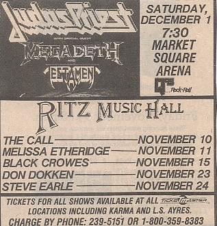 - 25/07/1987; Concert at ??, Newark, OH, USA. opening for Anthrax.